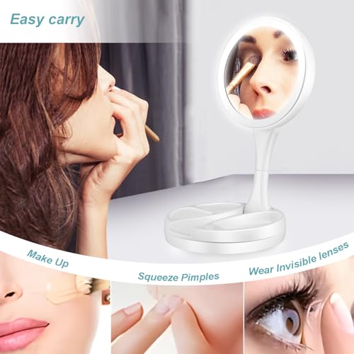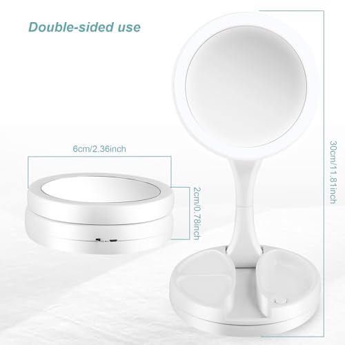 【Forse il Perfetto Specchio per l'ingrandimento del Trucco】Questo specchio ad anello a LED ha una visualizzazione senza distorsioni, un ingrandimento puro 10X, un'illuminazione naturale del cielo ed è noto come lo specchio di dimensioni perfette per i viaggi o il campeggio. Forse troverai questo specchio a mano semplicemente perfetto