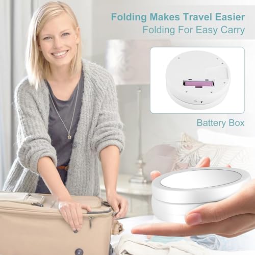 【Dimensioni Portatili e Supporto Flessibile】13 cm di diametro, 5,3 cm di spessore può essere piegato rapidamente quando non in uso, in modo da poter facilmente riporre questo specchio portatile nella borsa e portarlo quando si viaggia o in affari.