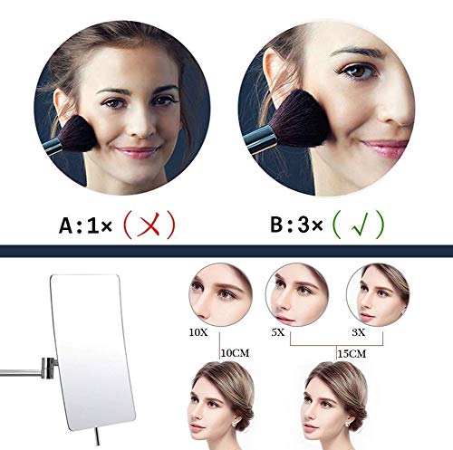 MTXJ Specchio Ingranditore da Parete X3 e Specchio Piatto, Girevole 360 °, Allungabile e Finitura Cromata per Bagno, Spa, Hotel Specchietto da Trucco
