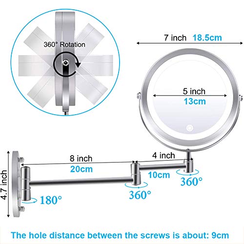 MRJ Specchio Ingranditore da Parete 10X, Specchio Ingranditore da Trucco con Luce LED, Specchio per Il Trucco, Ruota di 360°,Cromato in Metallo