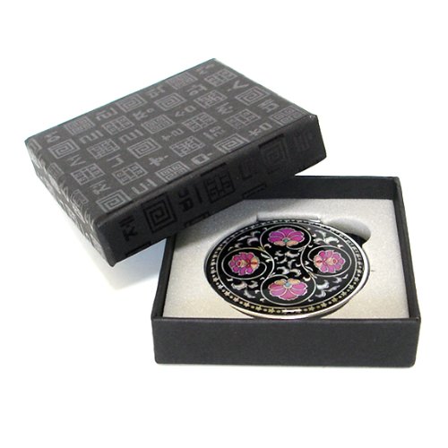 Specchio a Mano In Madreperla Con Fiori Viola Nero Arte Deco Rotondo Compatto Specchio da Borsa o Borsetta Specchio Porta Trucchi o Cosmetici Specchio Tascabile Con Motivo Arabesco