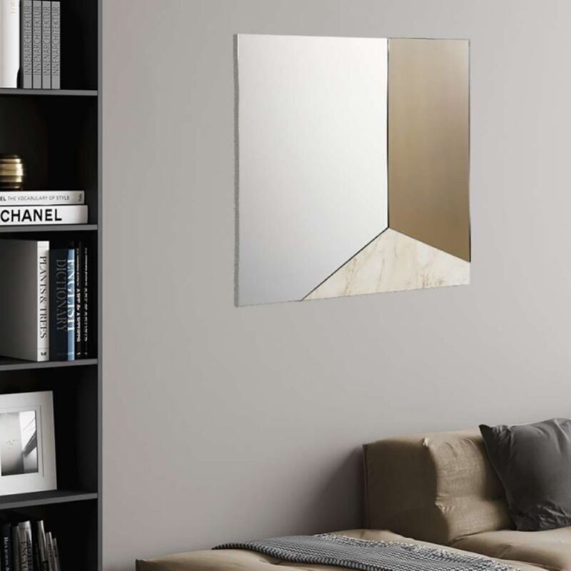 Specchio quadrato THOMAS 80x80 cm con decorazioni in laminato effetto marmo avorio,specchio chiaro e specchio bronzo. Specchio quadrato dal design moderno,che rendera' ogni ambiente elegante grazie all'insieme del decoro in laminato effetto marmo,allo specchio chiaro e allo specchio bronzo. CARATTERISTICHE Colore: Avorio/Bronzo Materiale: Laminato effetto marmo,vetro Peso: 9 kg Tipologia: Specchio da parete Dimensioni: Larghezza 80 cm / Altezza 80 cm Forma: Quadrato Manutenzione: Pulire con un panno non abrasivo e prodotti poco aggressivi