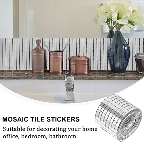 Specifiche: Ogni rotolo di adesivo a specchio in vetro fai-da-te contiene 1464 piccoli quadrati, la quantità è sufficiente, 100 cm/rotolo, che può soddisfare le tue diverse esigenze ed è sufficiente per tutti i giorni uso.RPA20 232023Design autoadesivo: la nostra toppa in vetro ha autoadesivo sul retro di ogni piccola piastrella, che è molto forte e il colore argento può rendere la tua casa più luminosa.