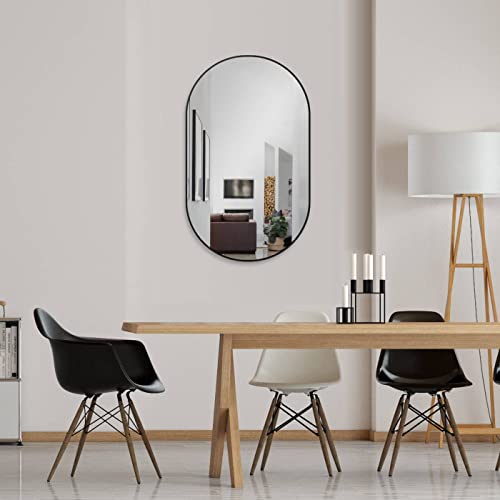HOKO Specchio da parete design ovale 60 x 100 cm con cornice in metallo nero opaco. Può essere montato in alto e in fuori. Bagno, soggiorno, sala da pranzo e corridoio