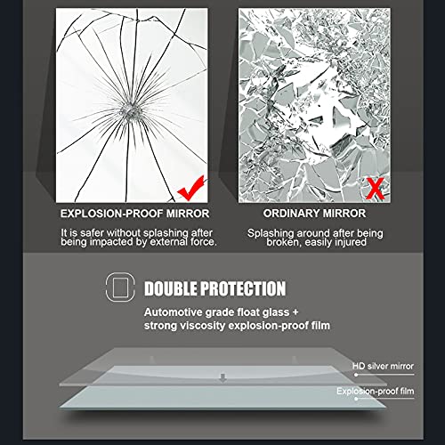 【INfrangibile】 Ti preoccuperai della rottura del vetro dello specchio e dei relativi problemi. Specchio argento HD elaborato con tecnologia antideflagrante. Non si romperà facilmente. Anche se è rotto, non si romperà in pezzi, nessun danno, più sicuro da usare.
