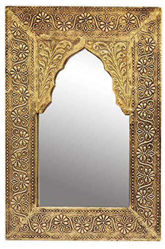 Specchio arabo realizzato in legno dorato, 100% fatto a mano dall'India, amorevolmente decorato in arabo con ottone, con dispositivo di sospensione sul retro.