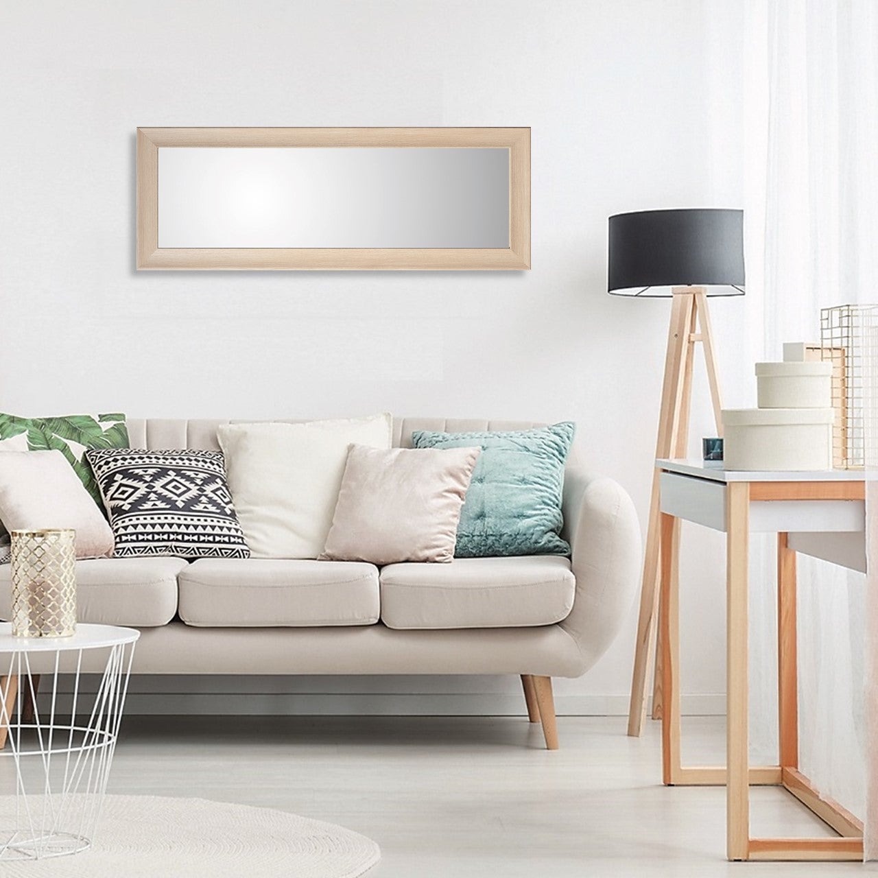 Con il suo colore tenue, lo specchio Denise rettangolare da 59x159 cm conferisce equilibrio e uniformità agli interni, sposandosi a meraviglia con ogni tipo di arredamento. È ideale per arredare gli interni conferendo un fascino unico grazie alle sue linee neoclassiche.. Lo specchio presenta una cornice in legno che evoca un'atmosfera ispirata alla natura e chic. Con schienale in MDF e capace di riflettere la figura intera, lo specchio può essere installato a parete verticalmente.. In caso di urto o spaccatura del vetro, la pellicola di sicurezza permette di ridurre i danni poiché impedisce la dispersione delle schegge. L'occorrente per il montaggio deve essere acquistato a parte. Si tratta di un modello di qualità realizzato in Italia.