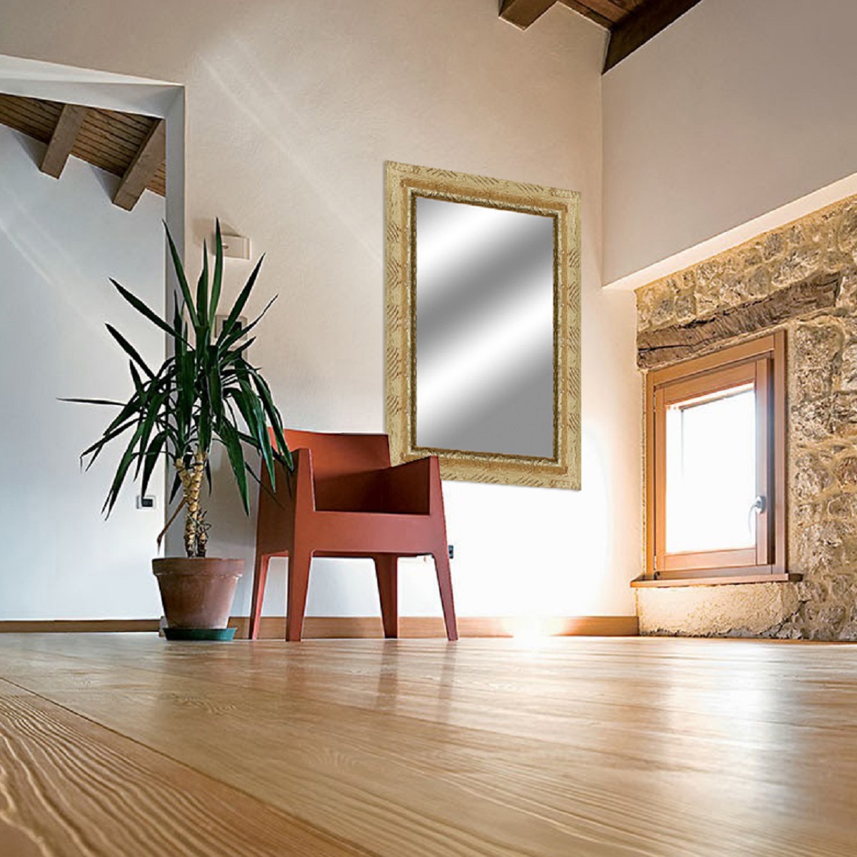 Con una dimensione di 98x138 cm, lo specchio dalla forma rettangolare Medea è un vero must have per vivacizzare gli ambienti e renderla ancora più confortevoli. Grazie alla finitura rétro e alla linea neoclassica questo specchio conferirà un fascino ineguagliabile agli interni della casa.. Il rivestimento in legno della cornice di questo specchio infonderà calore e naturalezza. Questo specchio a figura intera presenta uno schienale in MDF, e richiede un'installazione a parete in senso verticale.. Il materiale necessario al montaggio dello specchio deve essere acquistato a parte. Si tratta di un prodotto realizzato in Italia.