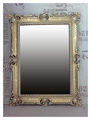 Lnxp, specchio da parete in stile barocco bicolore (argento e oro), da 90 x 70 cm, design anticato, rococò, shabby chic, rinascimentale, liberty, con sfarzosi ornamenti di lusso