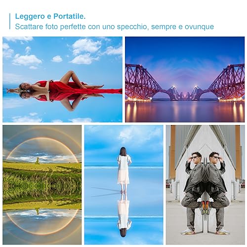 FOTOGRAFIA CREATIVA - Con la clip regolabile per lo specchio di riflessione della fotocamera del telefono, puoi scattare foto professionali e originali da qualsiasi angolazione. Dai libero sfogo alla tua creatività e cattura immagini artistiche e selfie innovativi.