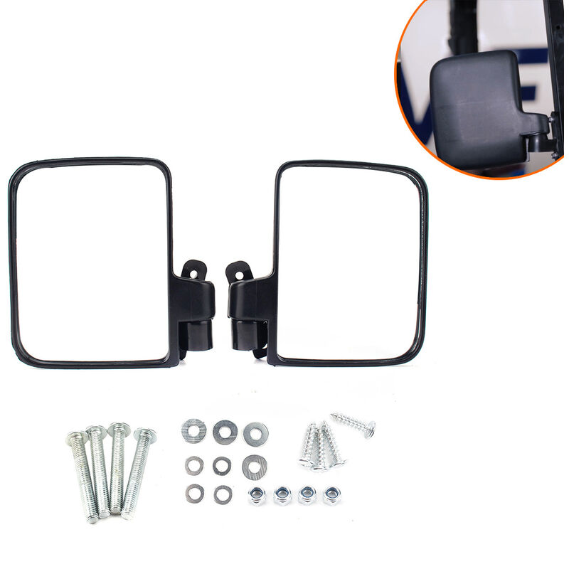 Attributo del prodotto: specchio del carrello da golf. Tipo di specchio: doppio specchio curvo Materiale del prodotto: materiale dello specchio: vetro, materiale della copertura: PP Applicabile modelli: carrello da golf composizione del prodotto: 2 specchi, 8 rondelle, 8 viti, 4 dadi.