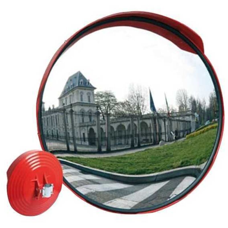 Specchio stradale con forma parabolica studiata per permettere a chi lo guarda di godere di un raggio visivo più ampio. Caratteristiche: Supporto in plastica;