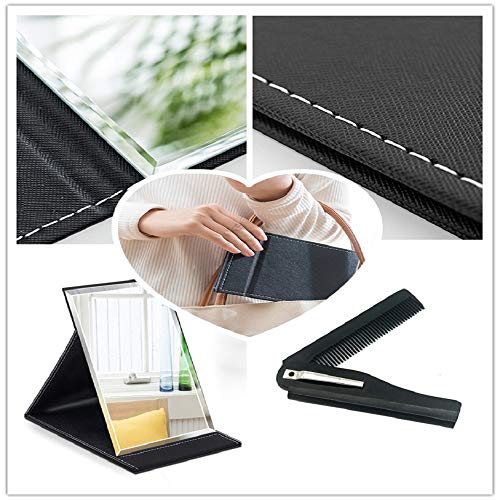 N-A Specchio da Tavolo Pieghevole Portatile,specchio tascabile compatto per rasatura Viaggio e trucco Con custodia in pelle PU e Pettine Tascabile Pieghevole(nero)