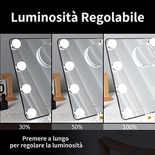 Lampadine durevoli: 8 lampadine resistenti sono morbide e non abbaglianti e la luce non danneggia gli occhi. Consente di applicare il trucco in luoghi bui o poco illuminati.