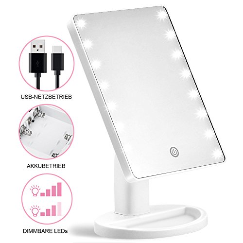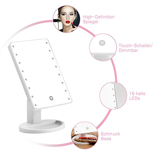 Kyg USB Specchio per il Make Up con 16 LED, specchio touch con interruttore, specchio Cosmetico, funzionamento a batteria