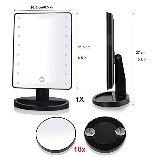 LED Specchio Trucco Illuminato da Tavolo, Bagno, +10x Ingrandimento Spot+Guida per L'utilizzo-16 LED Luminoso Specchio Cosmetico per il Trucco,Specchio da Barba. Par Invivo