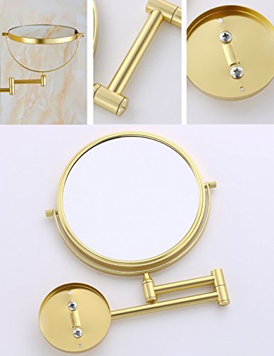 THEE Specchio Trucco da Parete da bagno Specchio da trucco Girevole a 360 ° Normale lente d'ingrandimento 3x Lo specchio a doppia faccia può essere estratto (Oro)