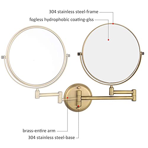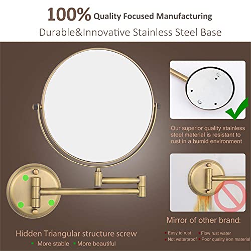 Specchio per il trucco a parete, specchio da barba ingranditore da 8 pollici in ottone, girevole, estensibile, pieghevole, per bagno, specchietti da toeletta bifacciali,3x