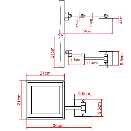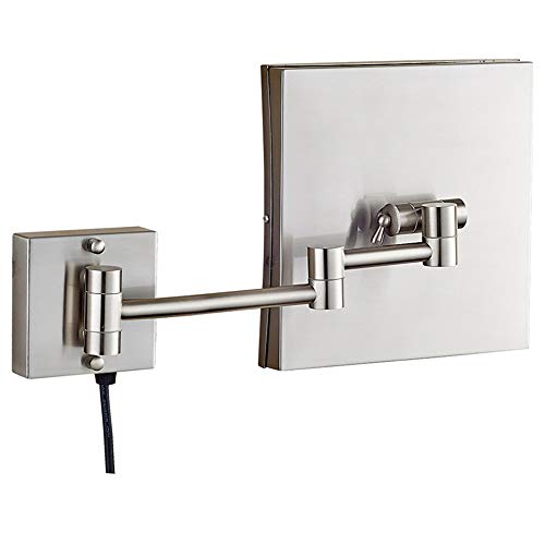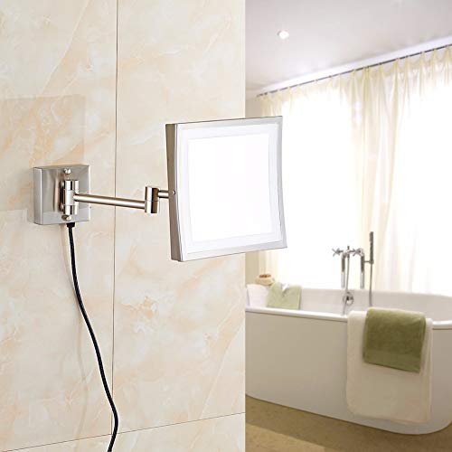 Specchio per il trucco a parete, 8,5 pollici bagno LED illuminato in ottone ingrandimento ingrandimento pieghevole da trucco specchi con luci, con interruttore spina elettrica,Nickel