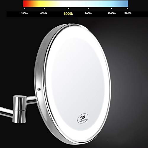 ★ Specchio monolaterale - specchio argentato, lente d'ingrandimento 3x, luce uniforme e morbida, adatto per rasatura, lenti a contatto, trucco, epilazione e altre attività sanitarie