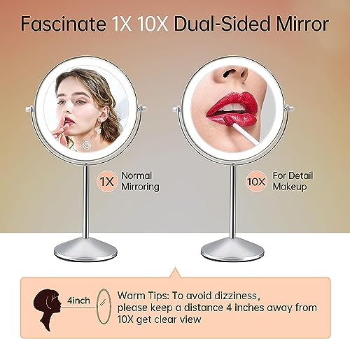Ingrandimento 1X/10X su entrambi i lati: (distanza consigliata per l'utilizzo dello specchio 10x: ≤10 pollici). Design a specchio da trucco a LED su entrambi i lati (un lato 1:1, l'altro lato 1:10). Ideale per tutti coloro che applicano il trucco, indossano lenti a contatto e pinzette per sopracciglia, rasatura, acconciatura, cura del viso o mascara.