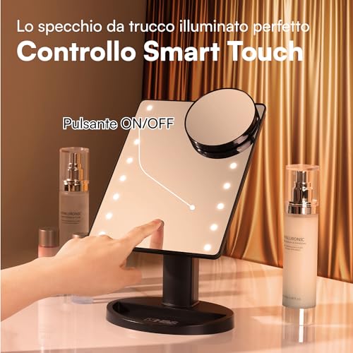 Illuminazione Ottimale: lo specchio illuminato per trucco ha una luminosità regolabile tramite smart touch, per un trucco impeccabile e una cura della pelle precisa. Realizza look perfetti con le luci LED integrate