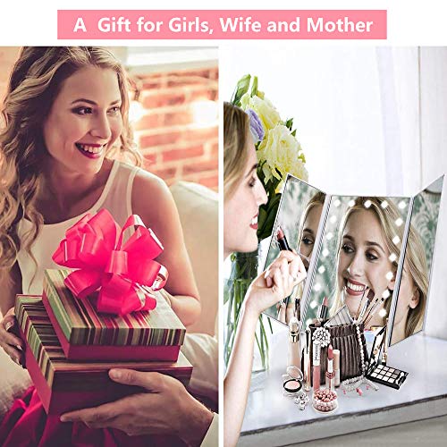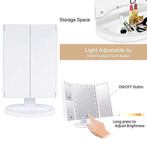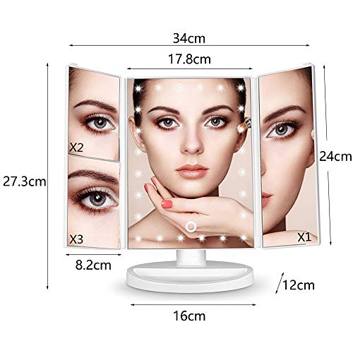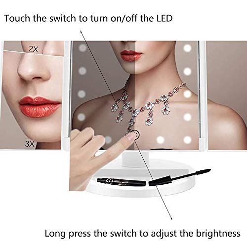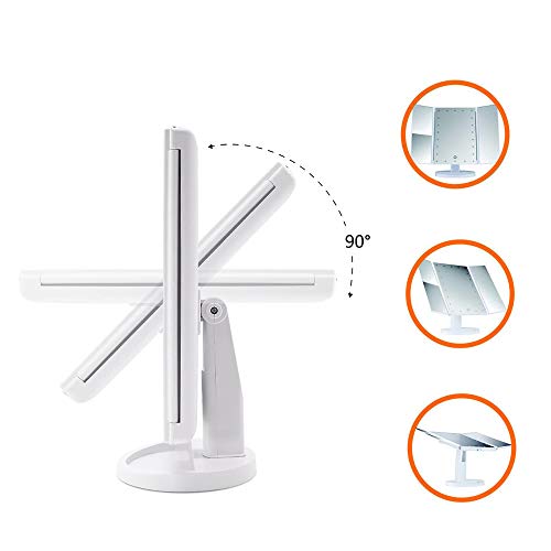 WDEC Specchio Trucco, con 21 LED, Specchio di Vanity Trifold Ruota di 90°, Ingrandimento 1x / 2X / 3X, Lo Schermo di Tocco, Ricarica USB, Luminosità Regolabile, per il Trucco (Bianca)
