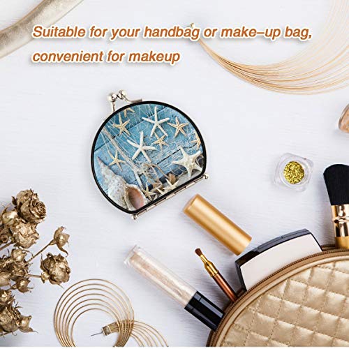 Specchio da viaggio per il trucco da donna - conchiglie con sabbia bianca a rete compatta specchio a doppia faccia 2x & 1x ingrandimento pieghevole mini specchio per viaggio tascabile