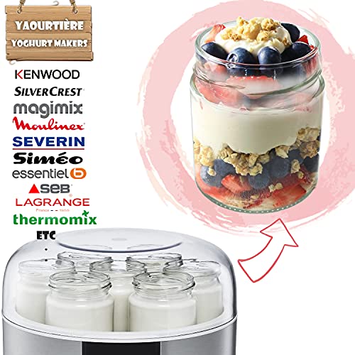 SPECIAL-DAY 6X vasetti da Yogurt in Vetro XL 220ml con 6 coperchi ermetici Senza BPA - Made in France - per yogurtiera - Robot - Multicooker (Thermomix, SEB, TM5 / 6, cookéo ECC.)