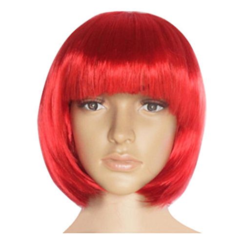 Hkfv speciale creative design capelli finti per feste Night Halloween anime Fashion corti parrucca Cosplay Party dritto parrucca molti colori qui, Red, 35cm/13.80