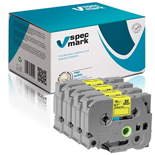 Specmark Nastro TZe-C41 18mm x 5m Set x 4 pezzi Nastro fluorescente nero su giallo compatibile con la stampante Brother PT P-touch AZe-C41 EZe-C41 TZ-C41 TZ2-C41