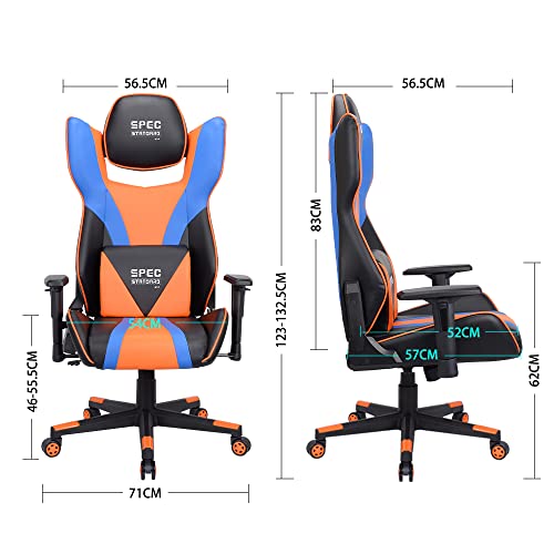 SpecStandard, Sedia da gaming premium ed ergonomica, reclinabile in orizzontale, nero/arancione/blu