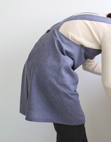 Spedizione gratuita Button chef Works Handmade Apron Japanese style x Shape denim Smock Natural Linen apron-blue color (H: 92 CM)
