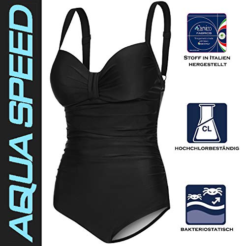 Aqua Speed Olivia Costume da Bagno de Donne | Elegante | Costume da Nuoto | Monopezzo | Nuoto | Spiaggia | Olivia - Nero | Taglia: 44 - E/F