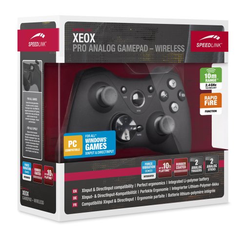 Speedlink Xeox PRO Analog Gamepad Wireless per PC, Durata di 10 Ore di Gioco, Xinput e Directinput, Funzione di Vibrazione, Funzione di Fuoco Rapido