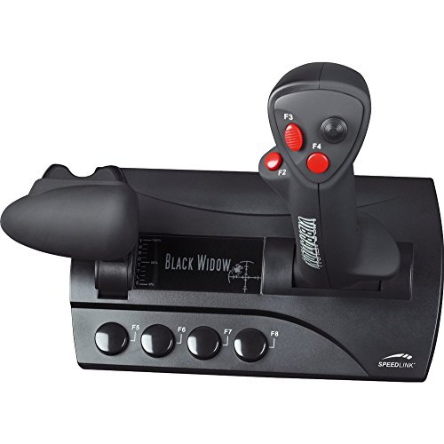 Speedlink Black Widow Flightstick per PC, Throttle con Comando Timone di Direzione, Funzione di Vibrazione, Comando Hat a 8 Direzioni, USB