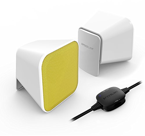 Speedlink SNAPPY Stereo Speakers - Altoparlanti stereo attivi (6W RMS, Comodo telecomando da tavolo, 3.5mm) bianco/giallo