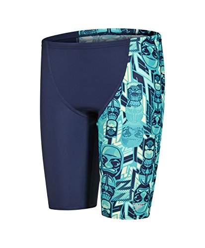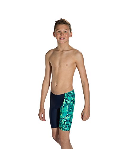 Speedo Tri Bold Allover V Cut Panel Costume da Bagno a Pantaloncino Ragazzo Navy/Green 28" (10 yrs)