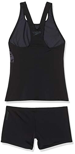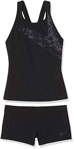 Speedo Boomstar Placement Tankini Boyleg, Donna, Nero/Grigio Ossido, XL
