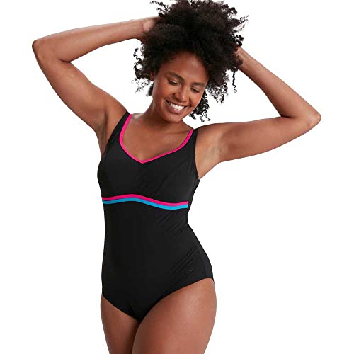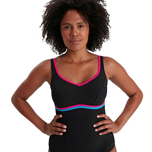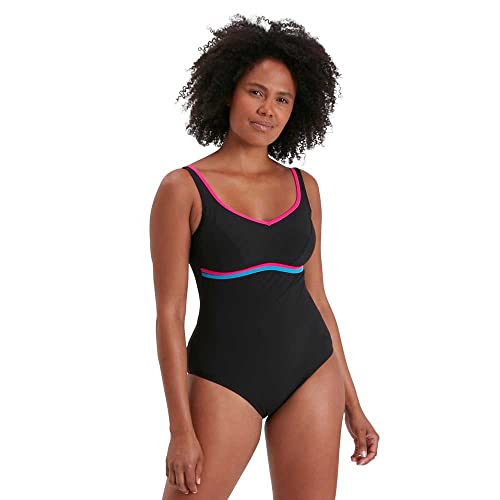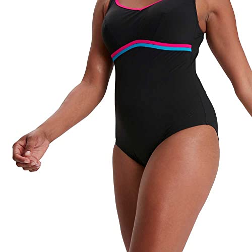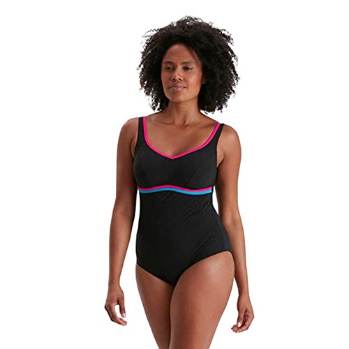 Speedo ContourLuxe Solid Shaping Swim Top & Short Set Donna, Nero (Black/Electric Pink/Pool), 32