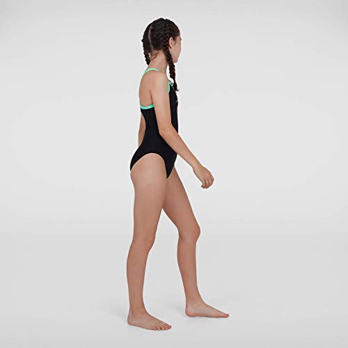 Speedo - Costume da Bagno con Cinturino Sottile da Bambina, Black/Green Glow/Pool, 13-14 Anni