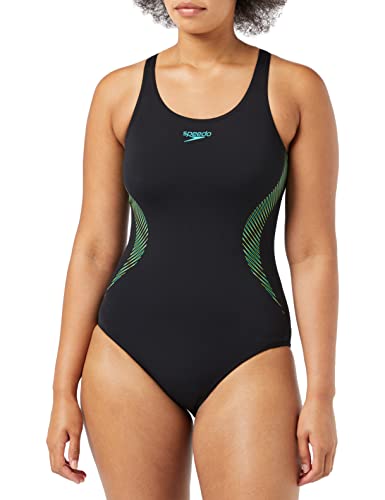 Speedo Donna Placement Muscleback Costume intero, Nero/Blu, 42