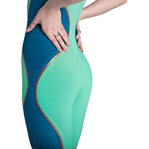 Speedo Fastskin LZR Pure Intent Closedback Kneeskin Costume da Bagno Donna, Donna, Costume da Bagno, 8-11975D881, Verde/Foglia da tè (Green Glow/Nordic Teal)/Oro Rosa/Bianco, 20