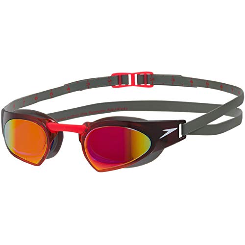 Speedo Fastskin Prime Mirror Occhialini da Nuoto, Unisex adulto, Usa Charcoal/White/Lava Red Taglia Unica