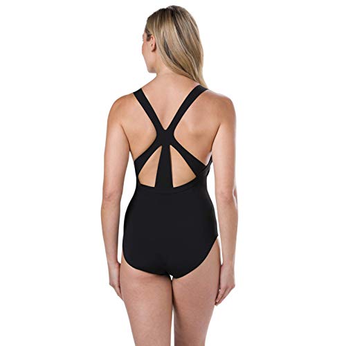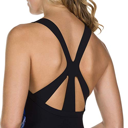 Speedo Opalweb Printed 1 Piece Costume da Bagno, Donna, Multicolore (Mirror Glow Blk/Chroma Bl), 36 (IT 46)