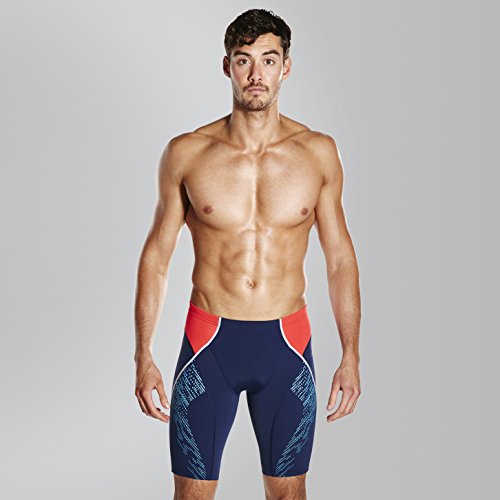 Speedo Fit Panel Jammer Costume da bagno da competizione lungo, Blu (Navy/Lava Red/Turquoise), 30