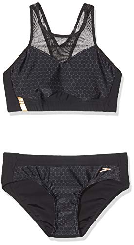 Speedo Pannello in Rete 2 Pezzi, Badeanzug Donna, Nero, 42 (IT 52)