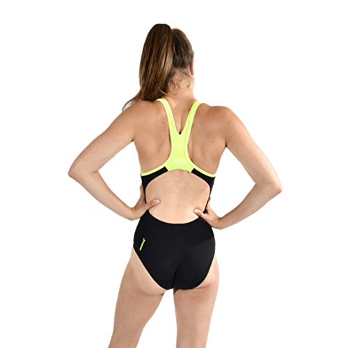 Speedo Placement Laneback AF, Costume da Bagno Donna, Nero/Giallo Fluo, 40-42