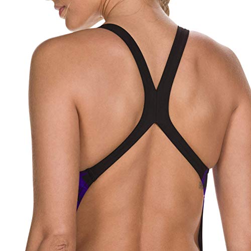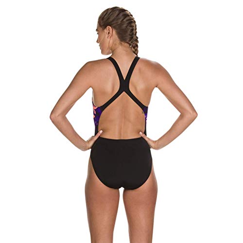 Speedo Refracthaze Placement Pbck Costume da Bagno, Donna, Multicolore (Refrct Hze Blk/Ryl Pur/Br), 32 (IT 42)