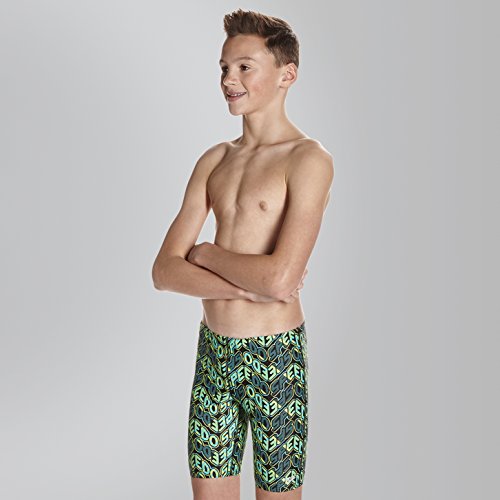 Speedo Pop Science Allover Jammer Costume da bagno da competizione lungo, Bambini, Bambino, Pop Science Allover Jammer, turchese (giada / nero/verde mela)